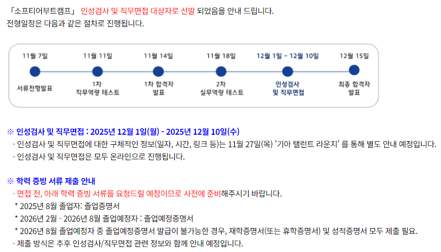 면접 전형 전에 증명사진과 졸업 예정 증명서를 내야 한다.