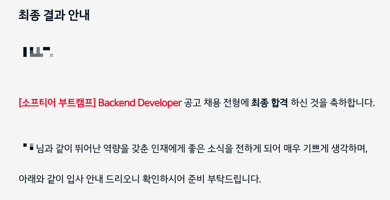 기수마다 일정은 다를 수 있을 거 같은데, 보통 소프티어 끝나고 한 달 안에 모든 채용 절차가 끝난다고 하시더라구요.